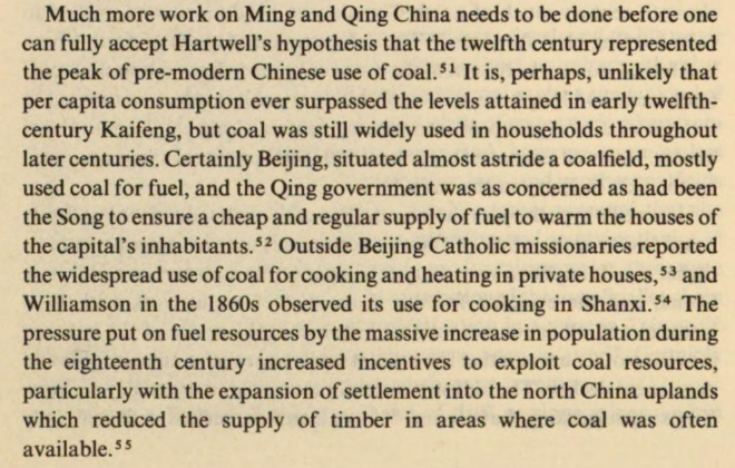 Du reste, la distance entre le Jiangnan et les réserves chinoises de charbon n'est peut-être pas un problème insurmontable. Le combustible est alors transporté par voies fluviales, parfois sur des milliers de km, vers les régions qui n'en disposent pas (Wright, 1985). 18/25