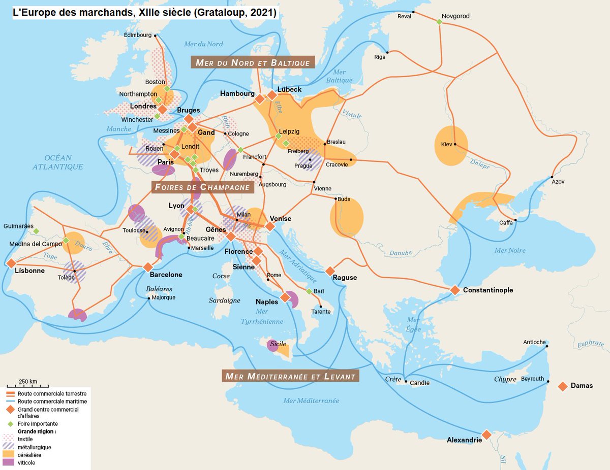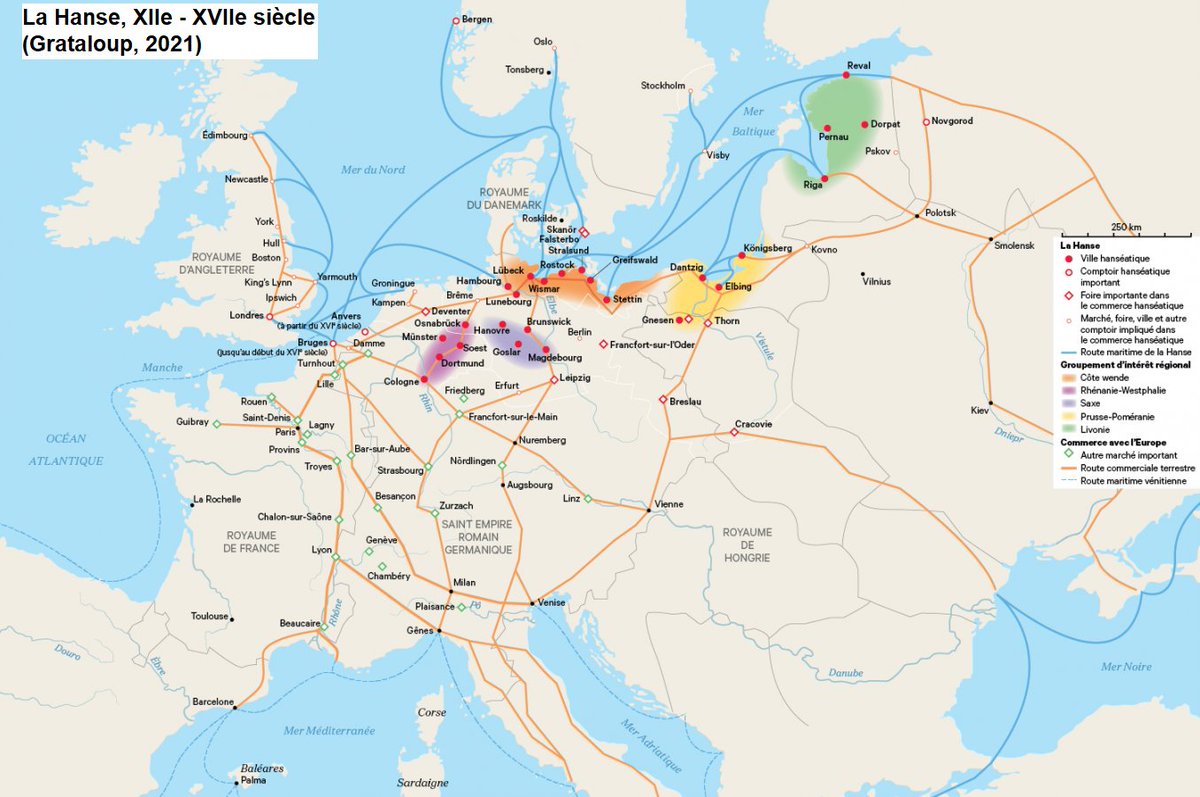 On pourrait même remonter au Moyen Âge et évoquer l'essor d'un système marchand très développé, à la fois en Méditerranée avec les Républiques italiennes et au nord du continent avec la ligue hanséatique. 7/25