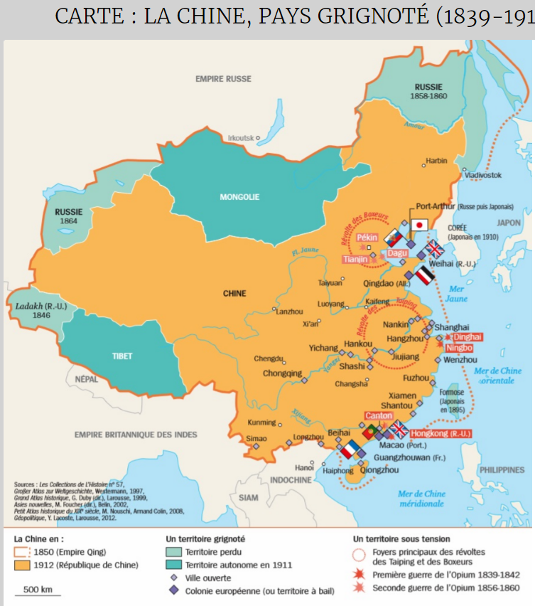 Ces événements sont cruciaux : la Chine est désormais dominée par l'Angleterre, mais aussi, à partir du second XIXe siècle, par la France, les États-Unis, l'Allemagne, la Russie et le Japon. Au XXe siècle, l'Italie et la Belgique obtiennent à leur tour leur part du gâteau. 14/25