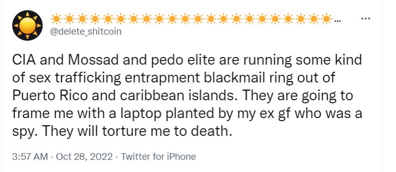 Muchgian’s last tweet came the day before his death. In it, he accused the CIA, the Mossad, and others of running a sex trafficking ring in Puerto Rico and other parts of the Caribbean…