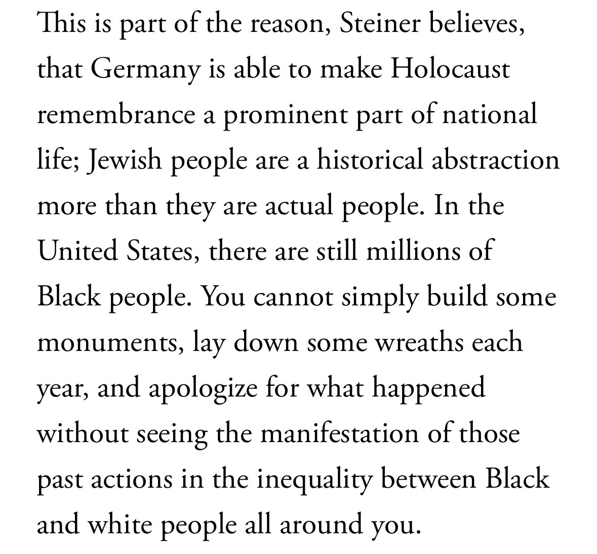 16/ One Jewish woman I spoke to said that this creates an environment in which Jewish people are more historical abstractions than they are actual people, empty canvases upon which Germans can paint their repentance. Many Germans do not personally know a Jewish person.