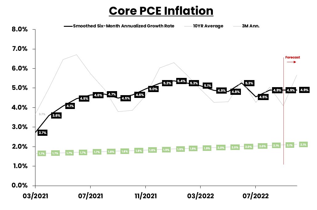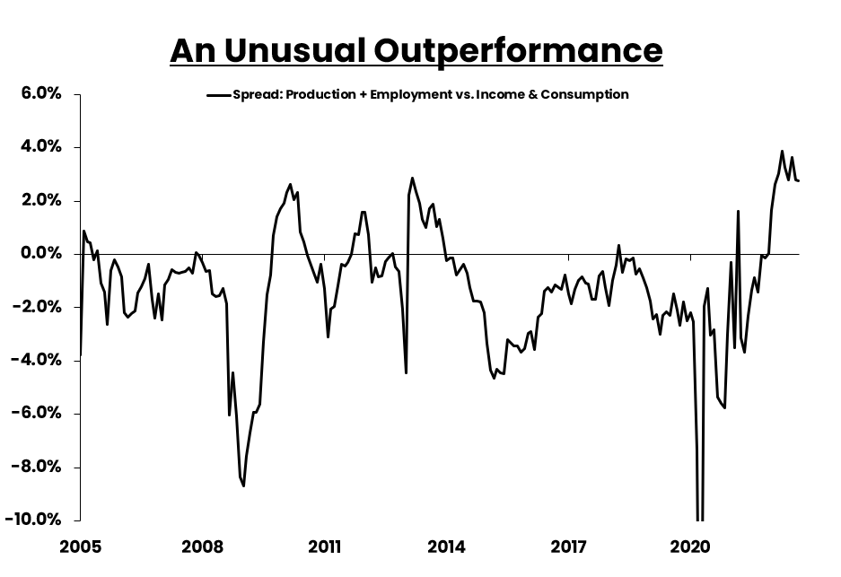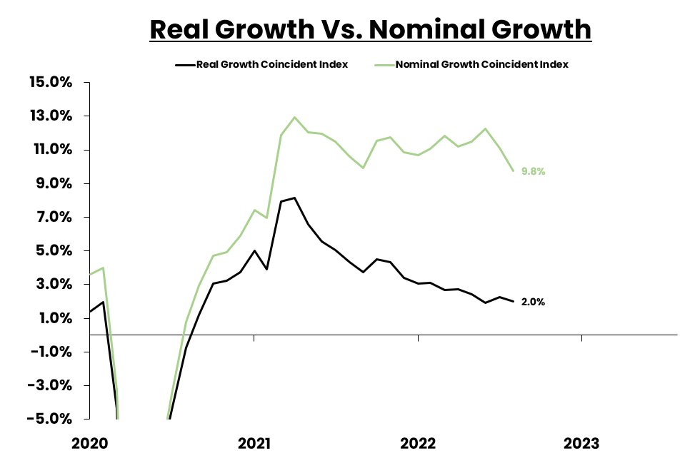 We can also reference the deeply inverted yield curve, another leading indicator, to again confirm that monetary restraint is deeply entrenched.
