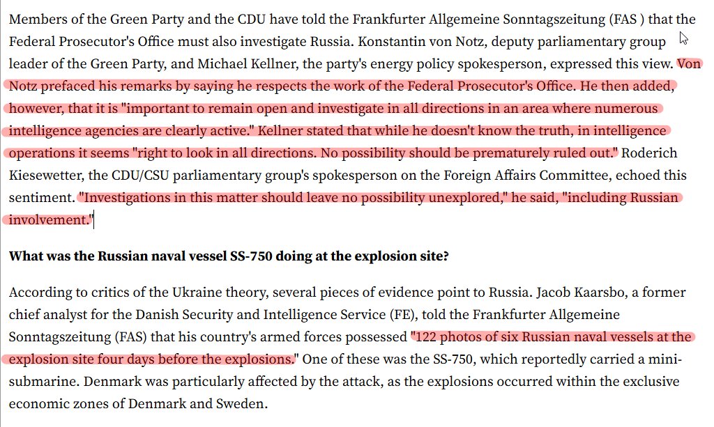 As soon as the diver is on his way to Germany the Frankfurter Allgemeine Sonntagszeitung (FAS) criticizes the investigation as being too one-sided. They argue that Russia must also be considered.