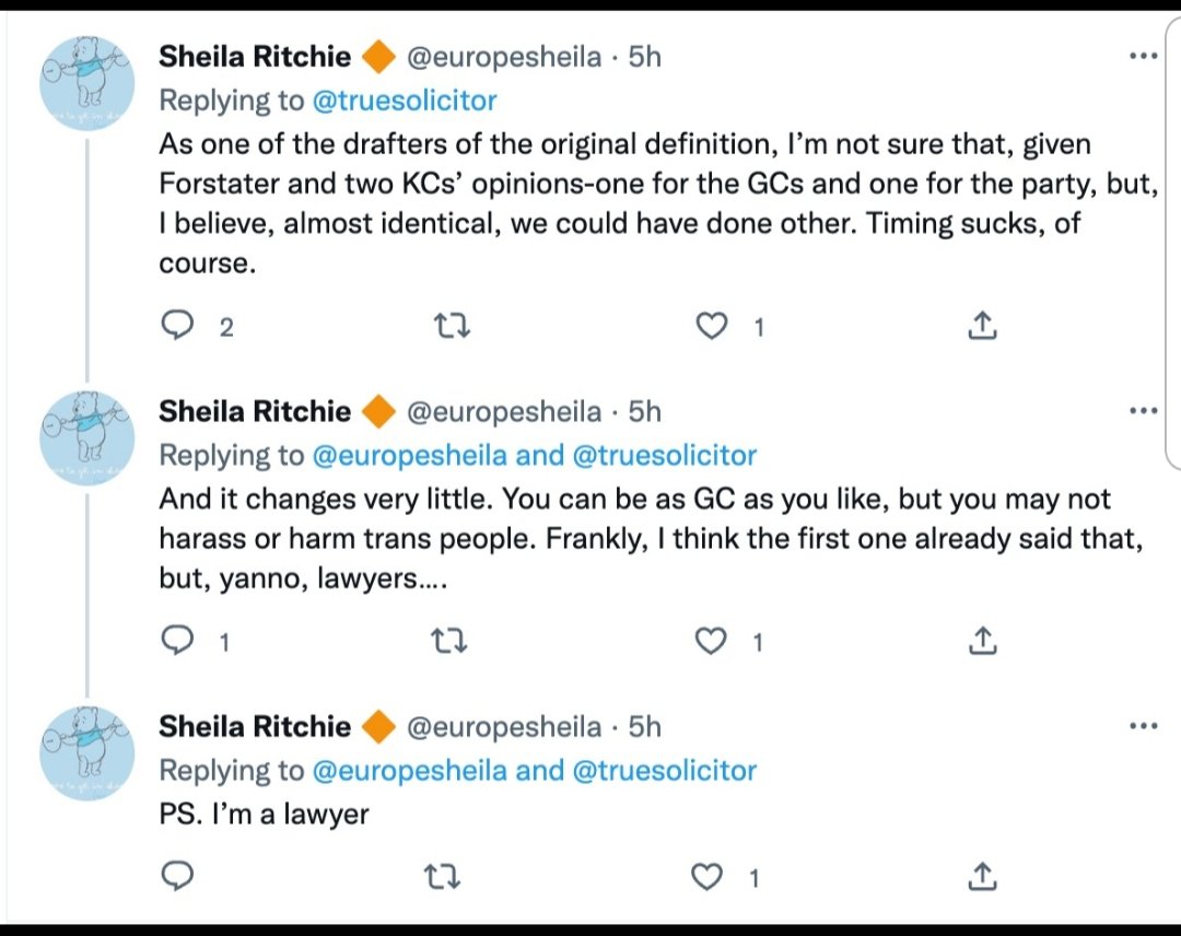The new definition puts the @LibDems within the remit of the law following @MForstater EAT judgement but ensures that GC'S cannot express their beliefs, the 'chilling' effects on the wider party still remain in place, and GC views are as restricted as possible,