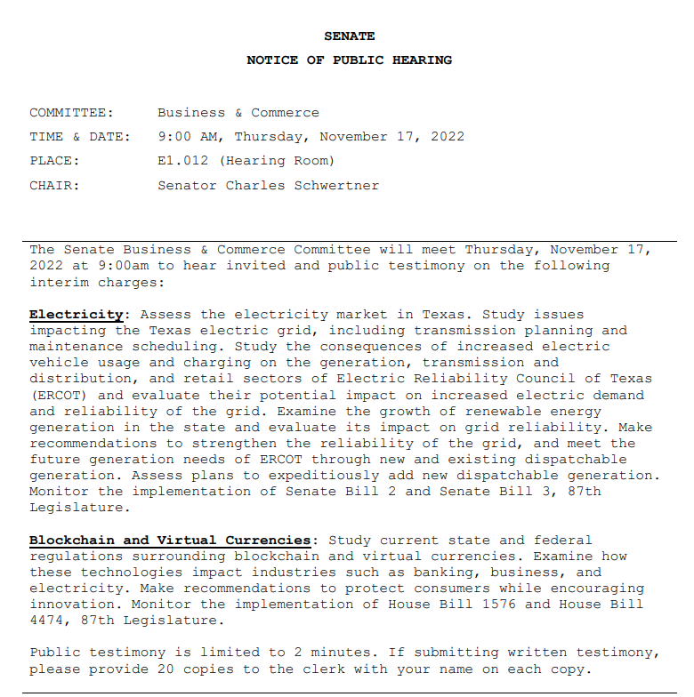 Big day at #txlege today. Hearing in Senate B&C focused on fixing the grid, proposed ERCOT market changes and in Sen Natural Resources on economic development programs (incl. for energy) and implementation of a bill that bans state investment in sustainable investors #txlege 1/🧵