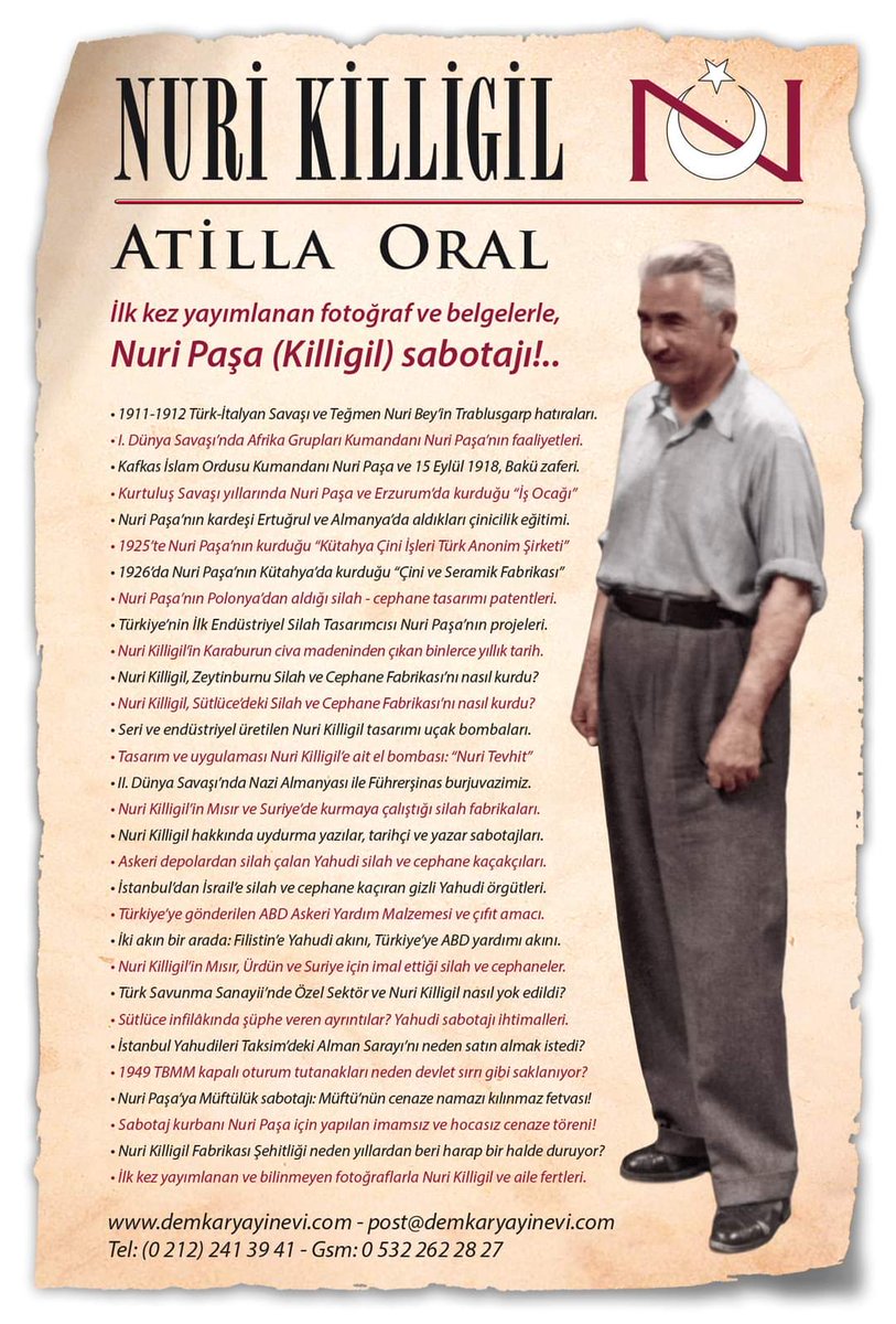 1- Hayatı silahlarla geçmiş, gerçek bir silahşor, Türk savunma sanayisinin temellerini atan, itilmiş, horlanmış ve unutulmuş, unutturulmuş bir kahraman: Enver Paşa'nın öz kardeşi Nuri Killigil Paşa…