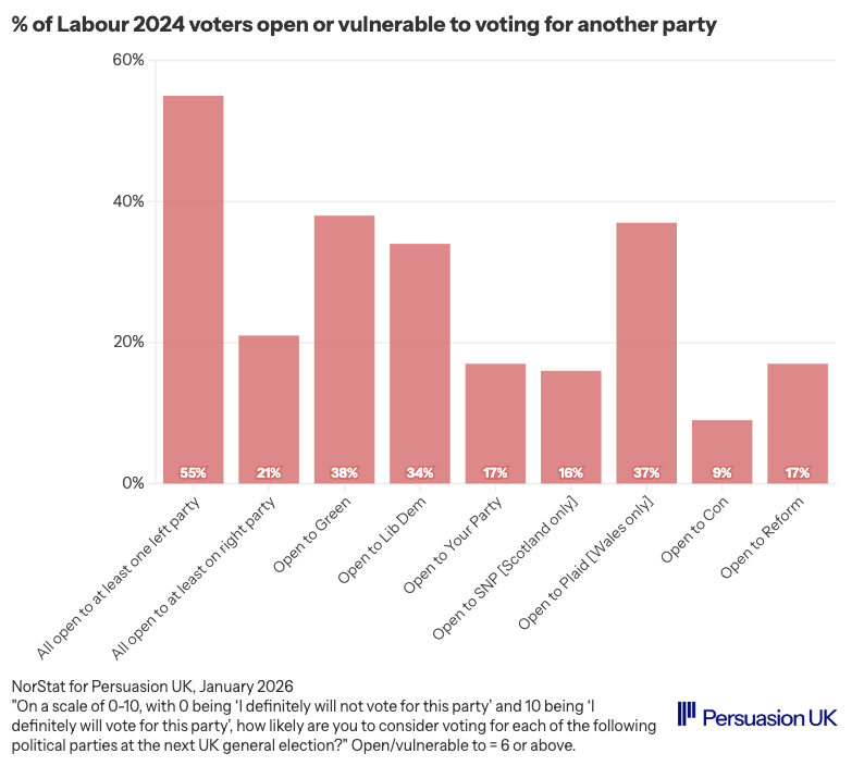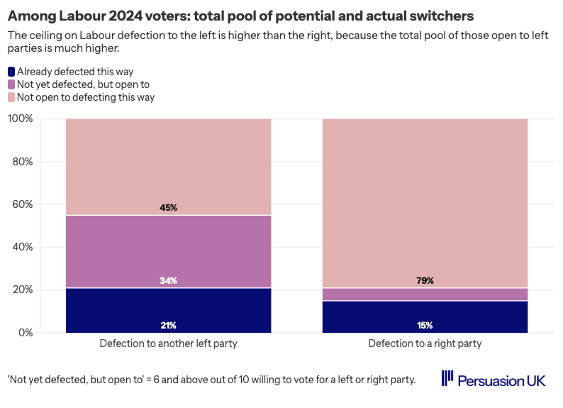 Big new @Persuasion_UK report out with @38degrees on 'progressive defectors' - Lab 2024 switchers to Greens, Plaid, SNP, Lib Dems.