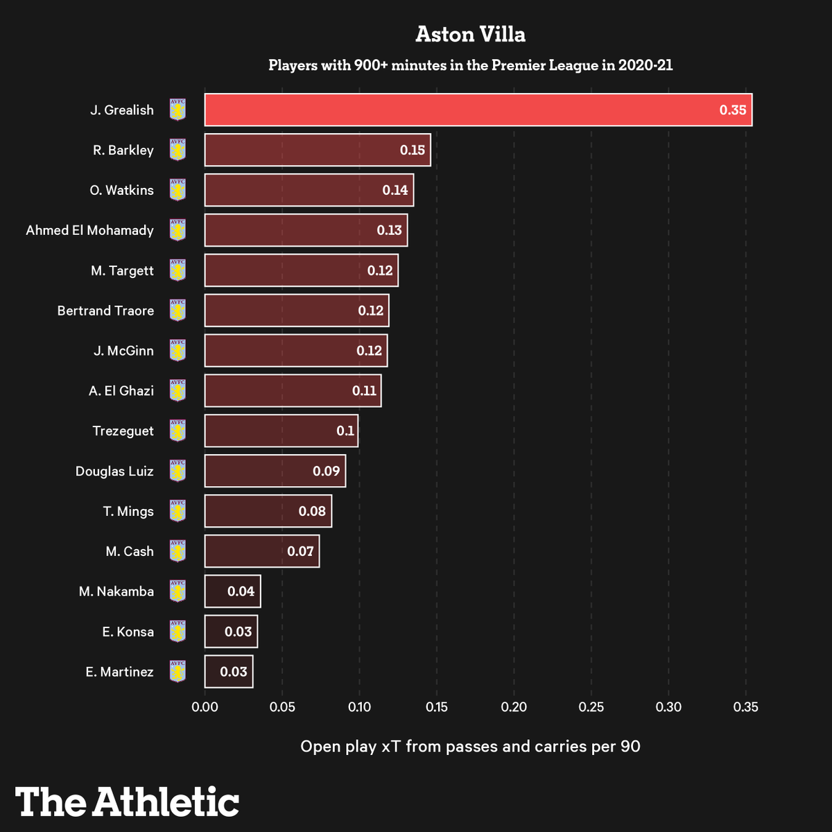 Grealish obviously added a ton for Villa last season, additions of Bailey + Buendia likely to make them less one-dimensional in terms of getting into dangerous areas