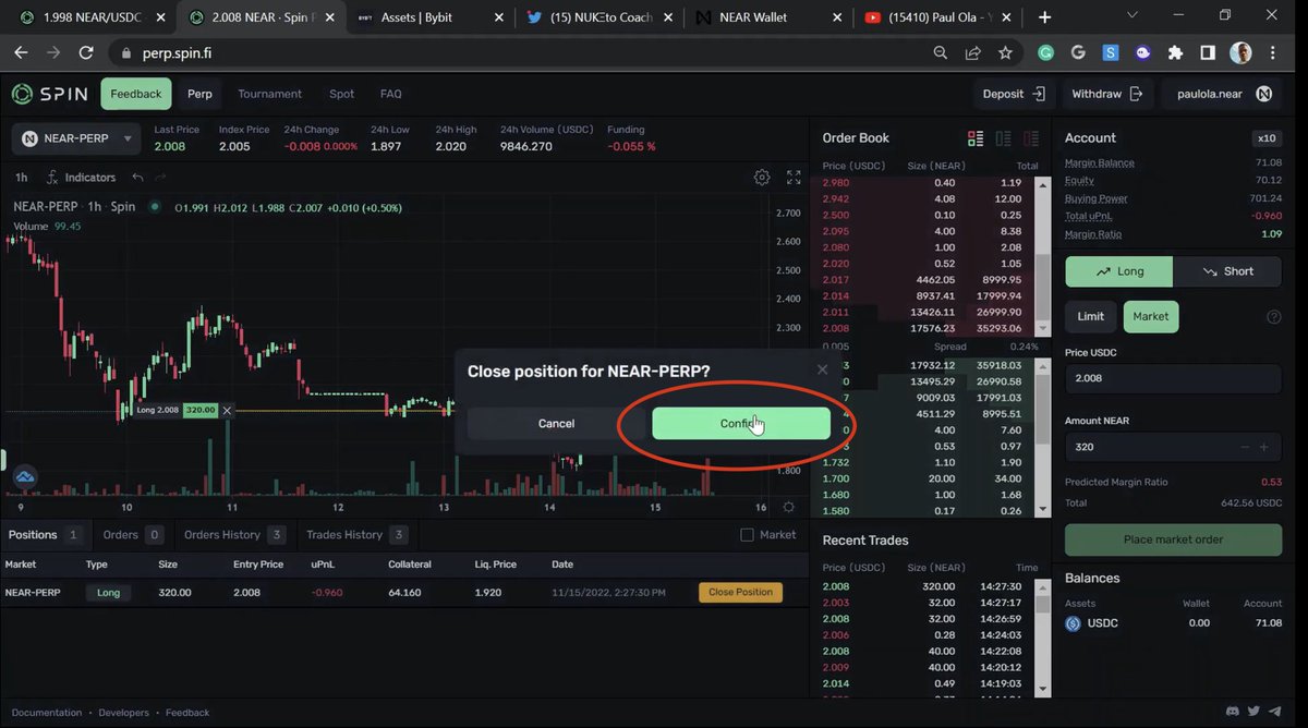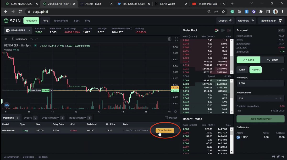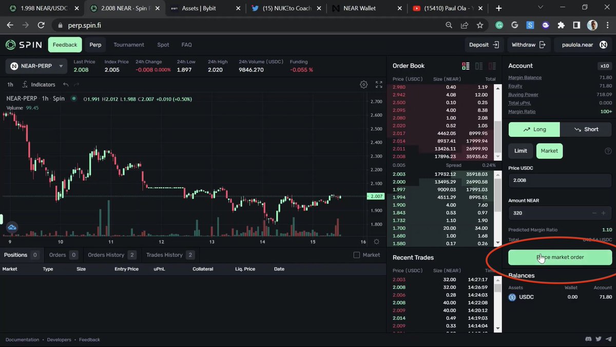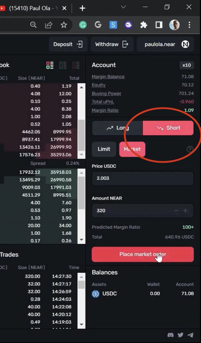 So in “AMOUNT NEAR” I inputted 320 $NEAR and market LONGed.