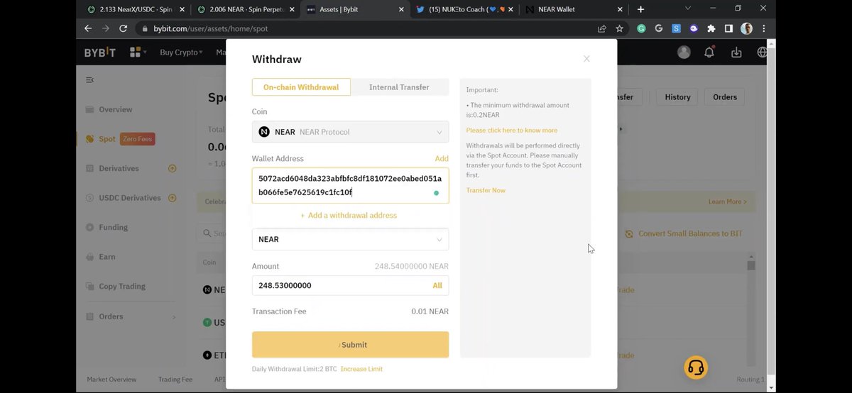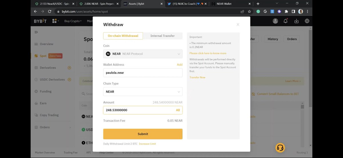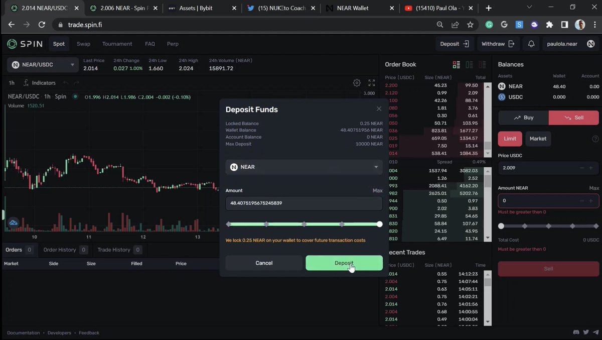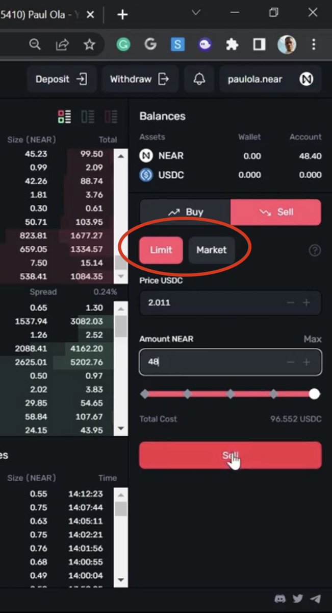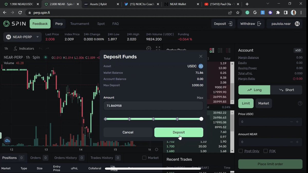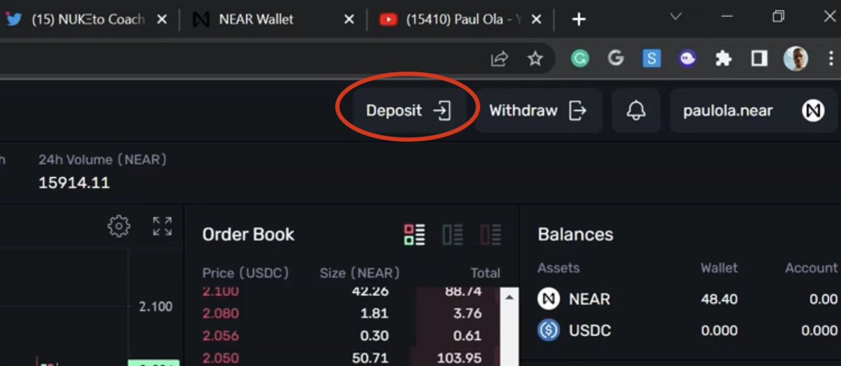 Deposit funds from your wallet. (If you deposited $NEAR on spot, you’ll have to swap to $USDC and withdraw it from there first)