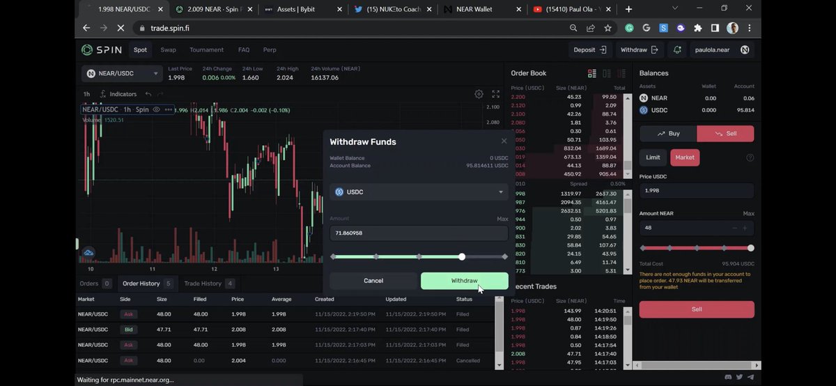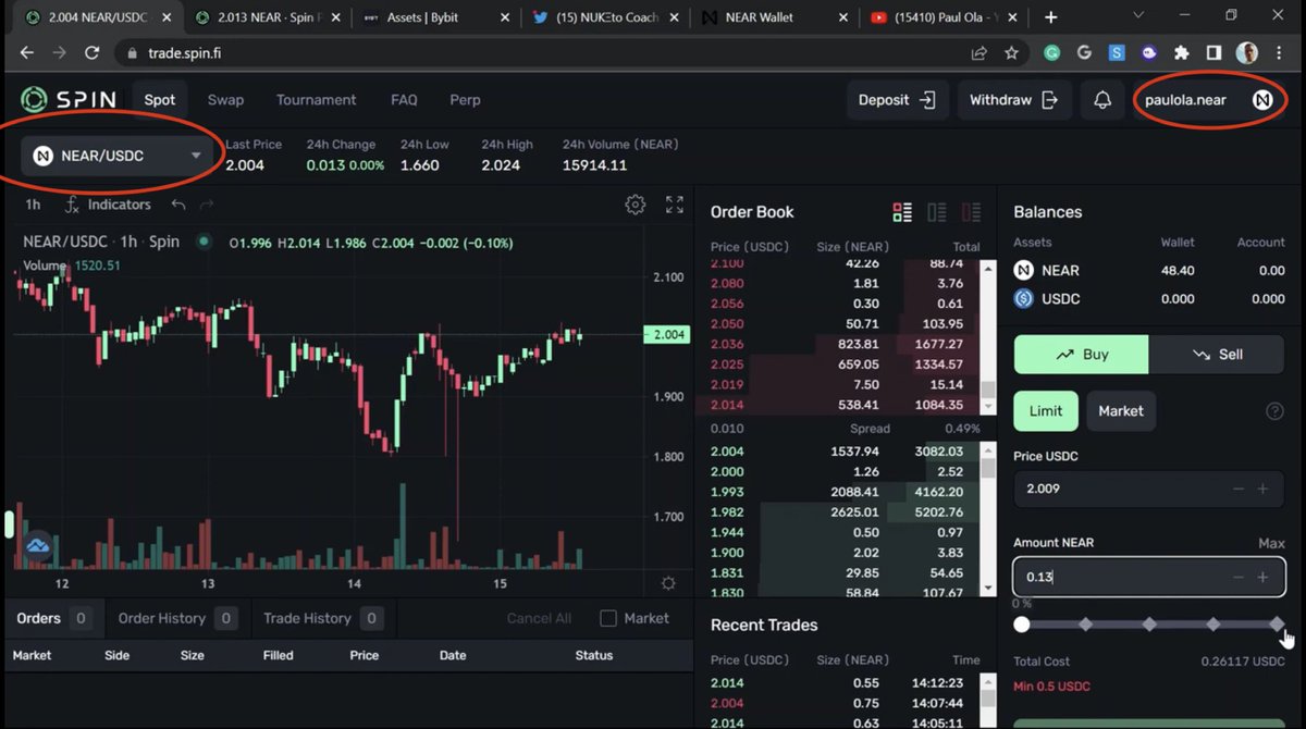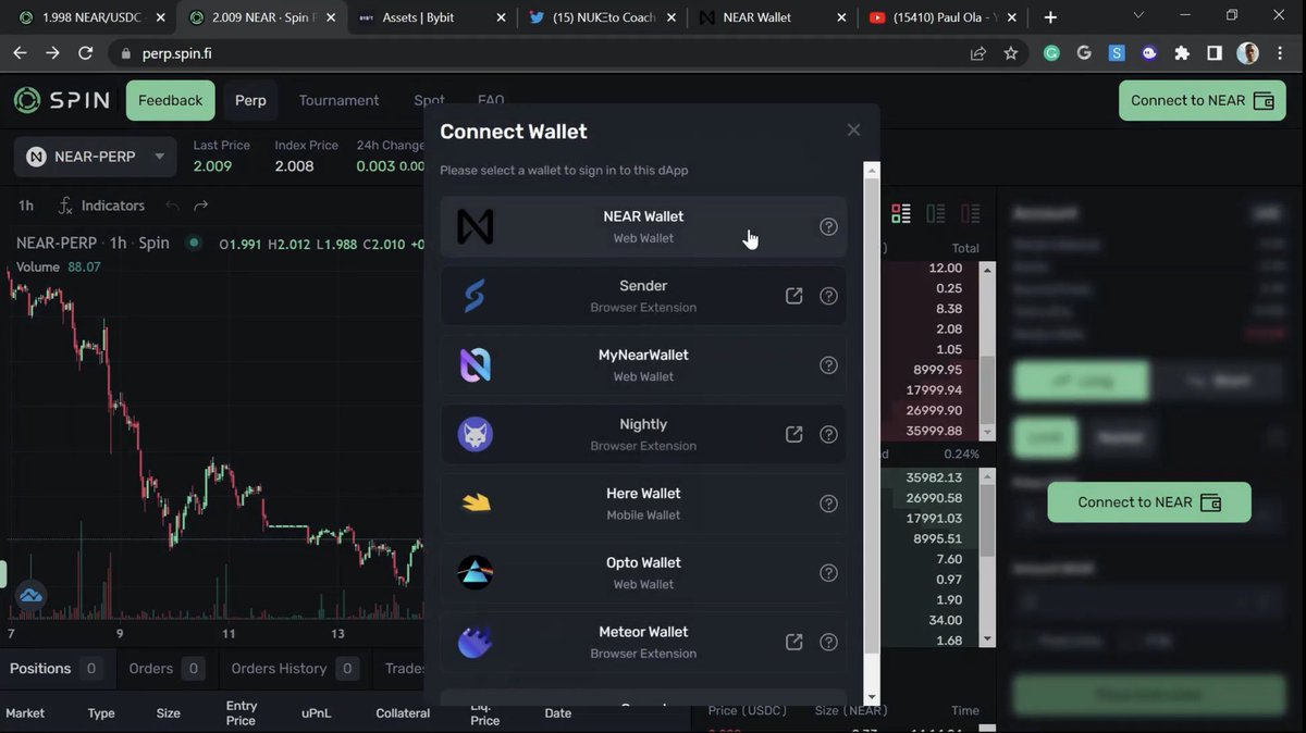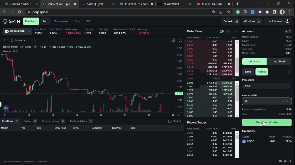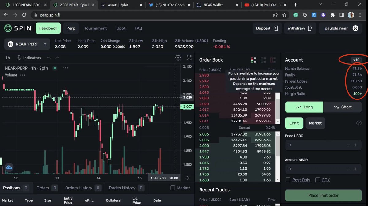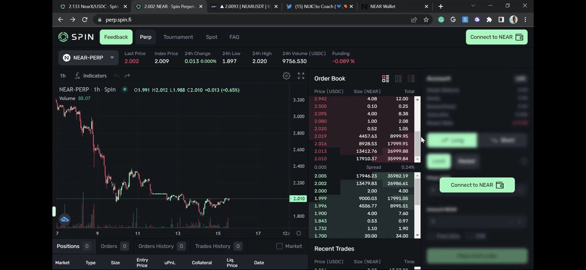 As you can see, what we have here is NEAR-PERP which means the perpetual (futures) contract for $NEAR.