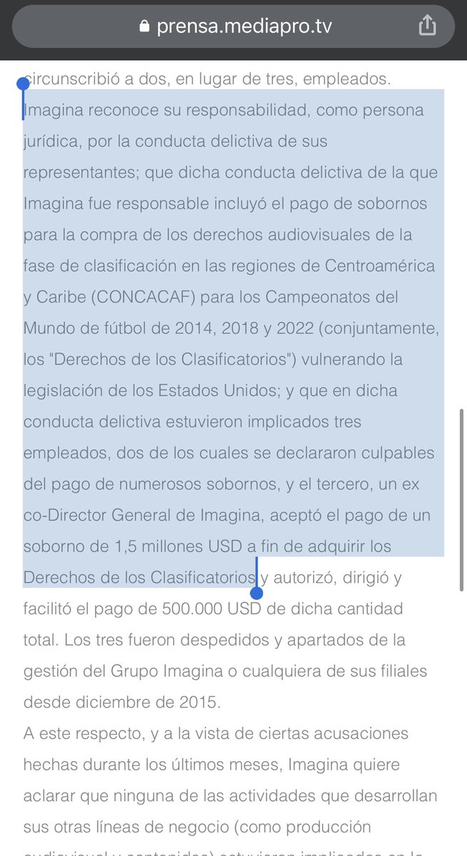Este es el acuerdo de la Fiscalía de New York donde Imagina, la filial de Mediapro, propiedad de Jaume Roures, acuerda la condena por haber pagado sobornos por los derechos audiovisuales de partidos clasificatorios para el Mundial de Qatar