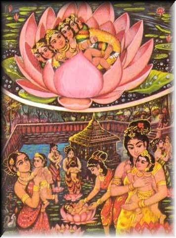 When even Ganga couldn’t bear the heat, She deposited the fireball into a lake in a forest of reeds.Finally, the fireball took the form of a baby with six faces – Eesanam, Sathpurusham, Vamadevam, Agoram, Sathyojatham, and Adhomugam, and hence the name Shanmuga or Shadanan.
