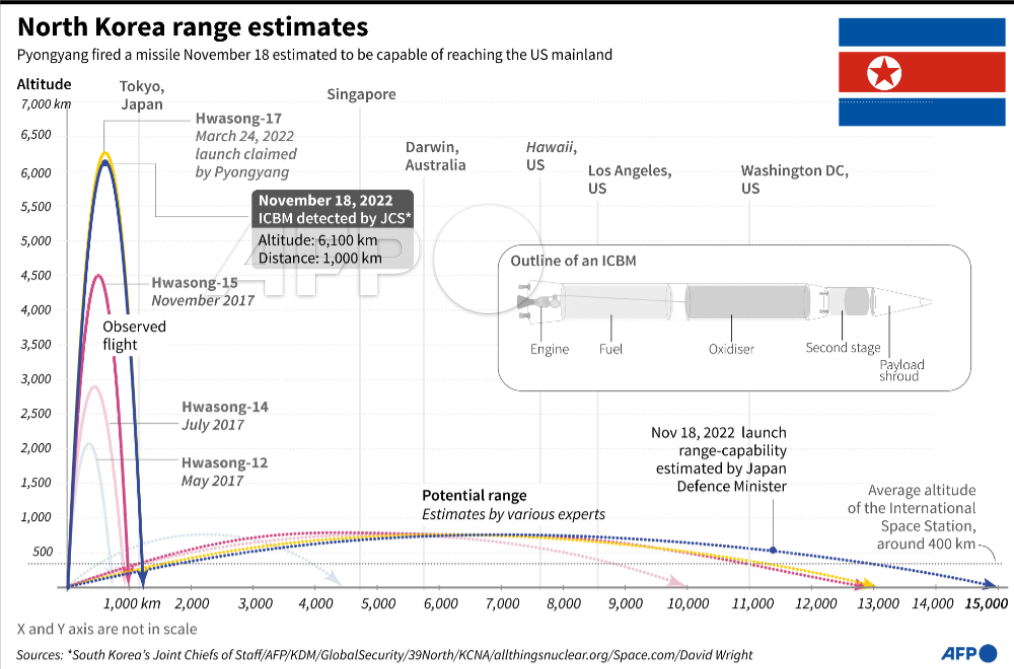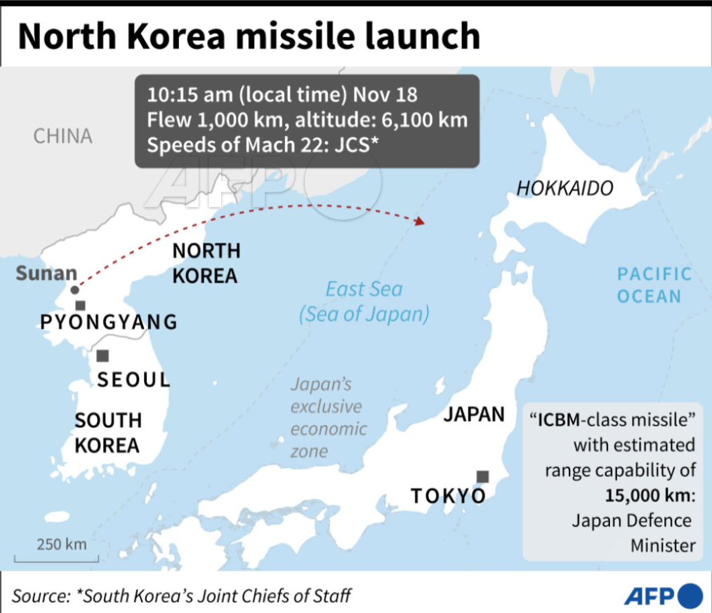 Map showing North Korea's missile launch on November 18. #AFPgraphics@AFP