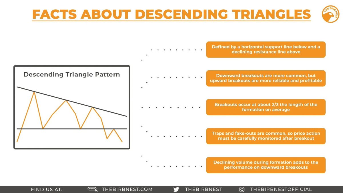 Descending Triangles - declining volume during formation adds to the performance on downward breakouts.