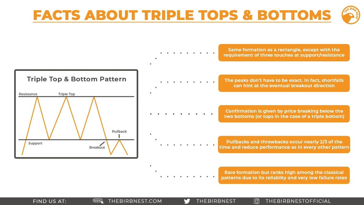 Triple Top & Bottom - cofirmation is given by price breaking below the two bottoms (or tops in the case of a triple bottom)