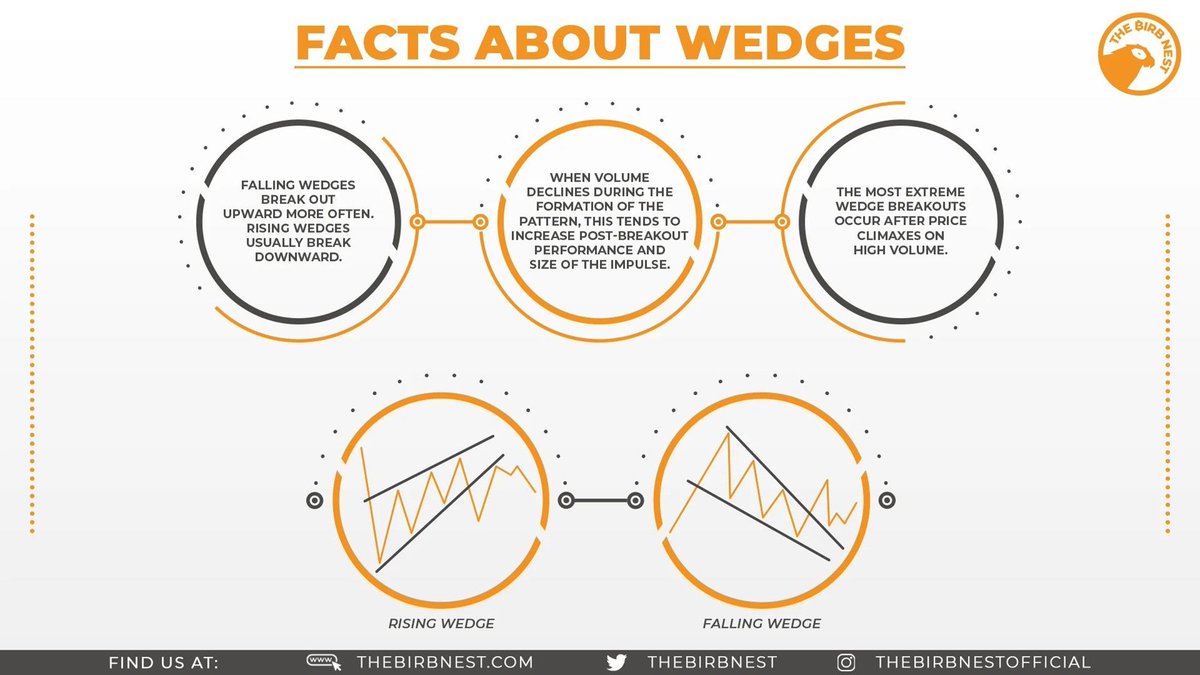 Pennants - almost always breakout in the same direction as the steep trend with few failures.