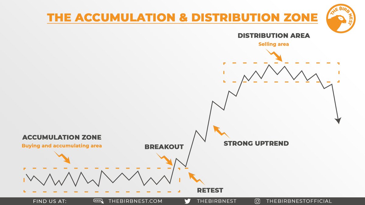 Find them during the accumulation zone, take profits when the uptrend continues, and exit inside the distribution area.