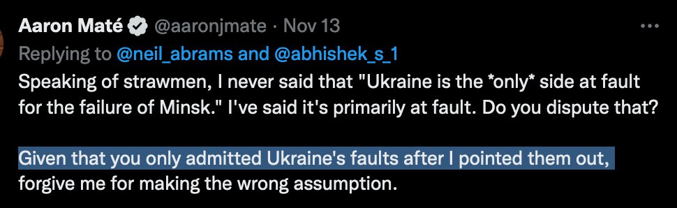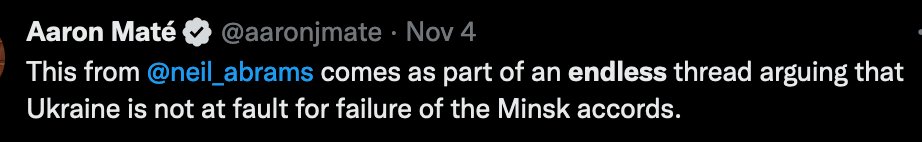 @aaronjmate My own position on Minsk has remained unchanged from the start: First, tankies like Maté are wrong to suggest that the blame for Minsk’s failure rests solely with Ukraine. Rather, both Ukraine and Russia share responsibility.