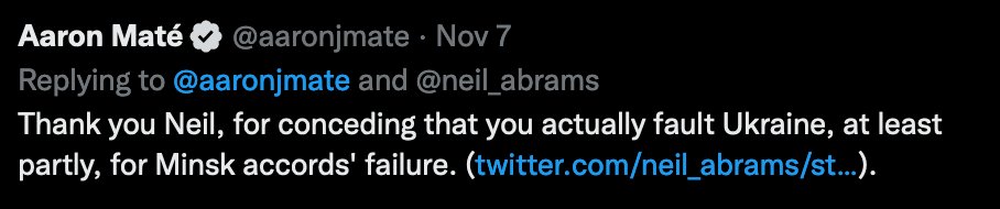 @aaronjmate So there you have it: The moronic crux of my exchanges on the Minsk accords with a totally intellectually honest Aaron Maté.