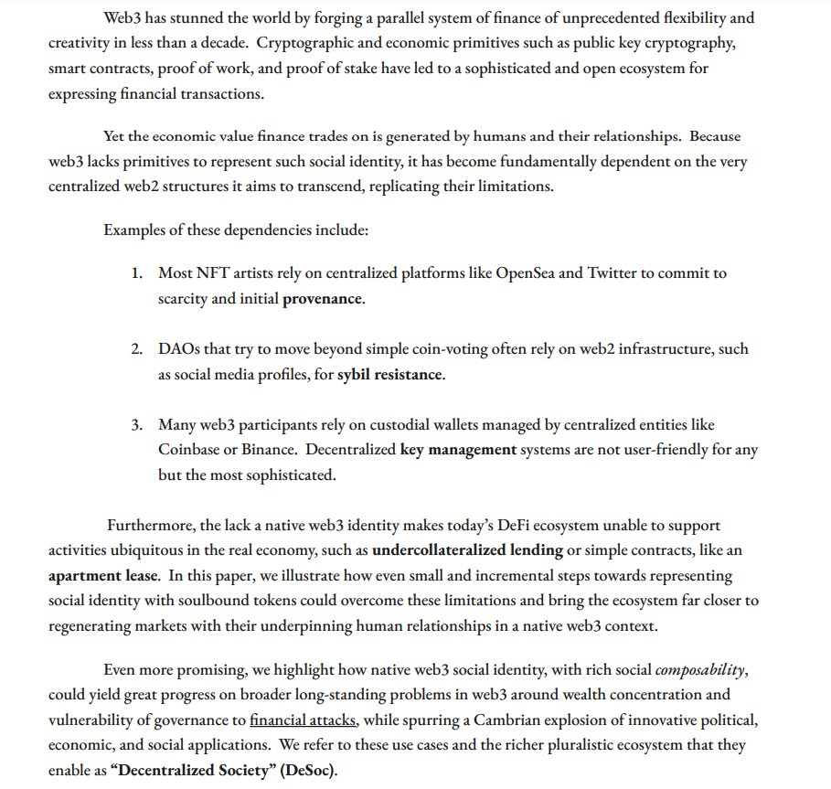 In the introduction they explain that web3 has achieved a lot but it's severely limited due to the lack of an identity system.