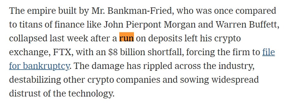 🧵Q: Why the puff piece? Why does the NYTimes fail to call the FTX collapse what it is, "fraud"?