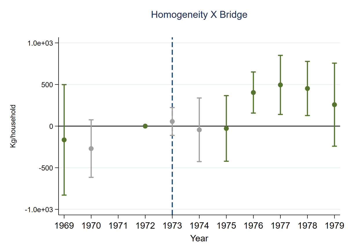 I combine the cross-sectional variation created by family clan density with the time variation in market access created by the construction of a new bridge, the Namhae bridge, in 1973.