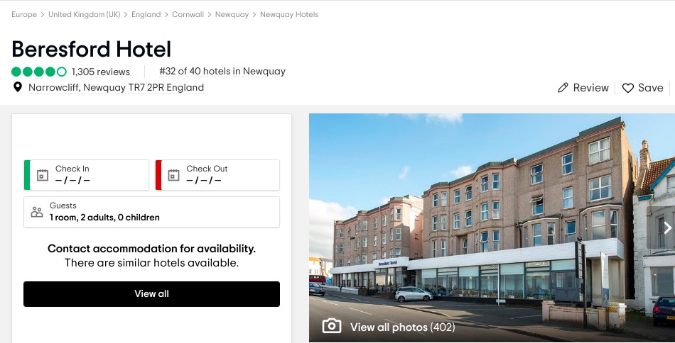 The Beresford Hotel in Cornwall is where the incident is reported to have happend: