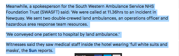 Though most coppers are scared of their own shadows so who knows...Hotel was surrounded by ambulances: