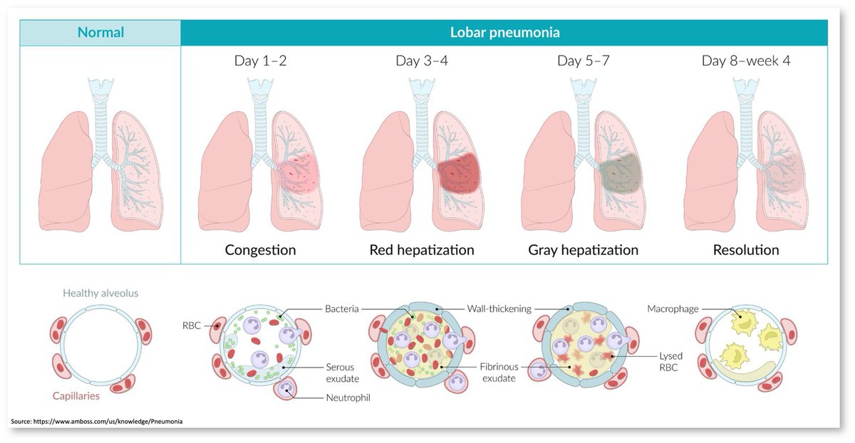 2/ The initial infiltrate in pneumonia contains bacteria and immune cells.