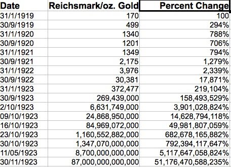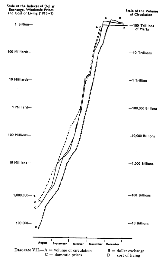 Perhaps just a footnote in the tale of Weimar hyper-inflation is that of Austria-Hungaria after the First World War. The dissolution of which happened as a result of WWI, the 1918 crop failure and the economic crisis (sic, inflation + monetary collapse)
