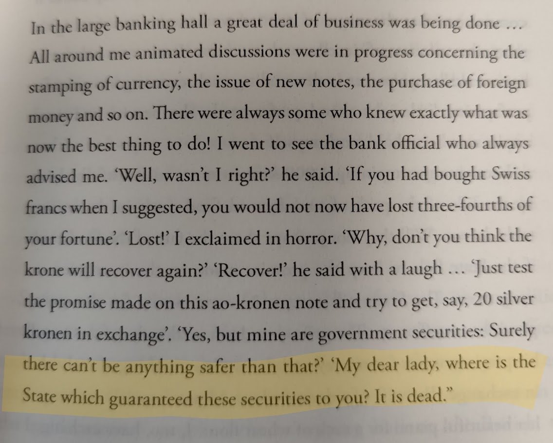 Those with paper money still believed that the Krone would recover and that the promises made by the Government meant redeption was guaranteed.