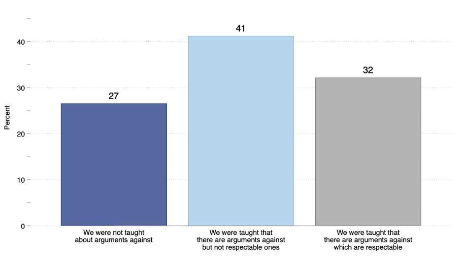 3/ Critical race and gender is being taught as truth rather than as one point of view, with just 32% saying they were taught other valid arguments against the radical perspective: