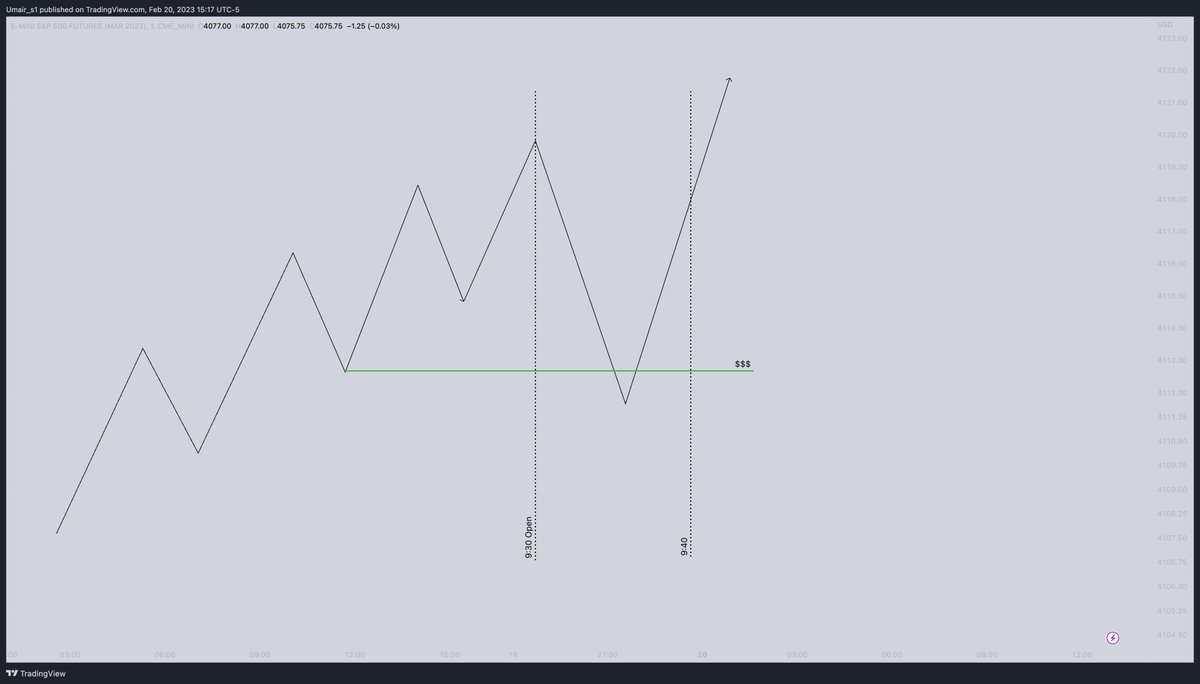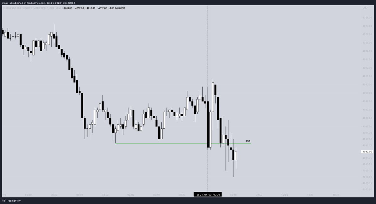 Here on ES we can see at 9:30 price comes down and takes out SSL. Knowing what I just mentioned, this move is designed to fake our retail traders into shorting the market.