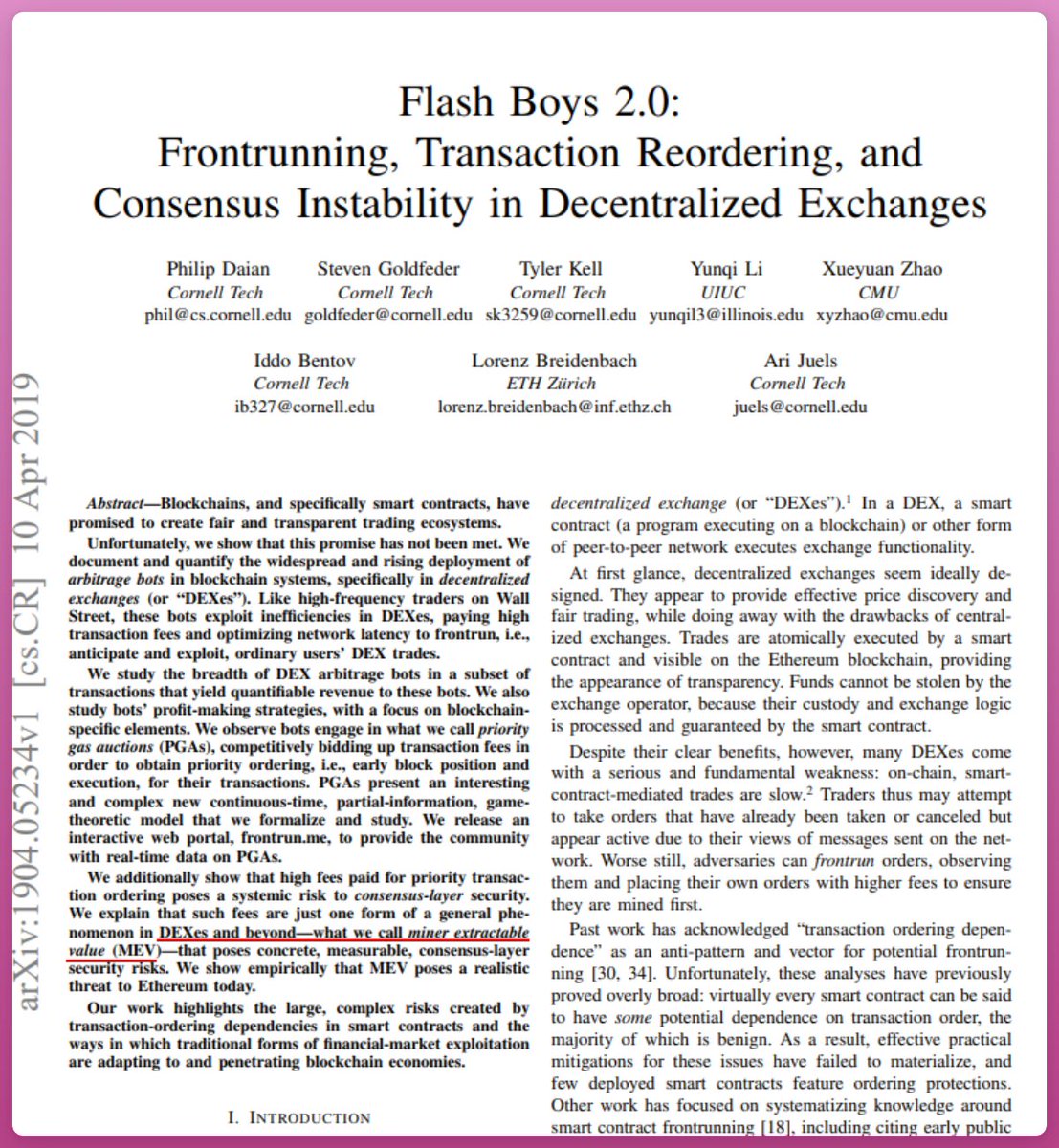 It was coined only in 2019 in a research paper 'Flash Boys 2.0 : Frontrunning, Transaction Reordering, and Consensus Instability in Decentralized Exchanges.'