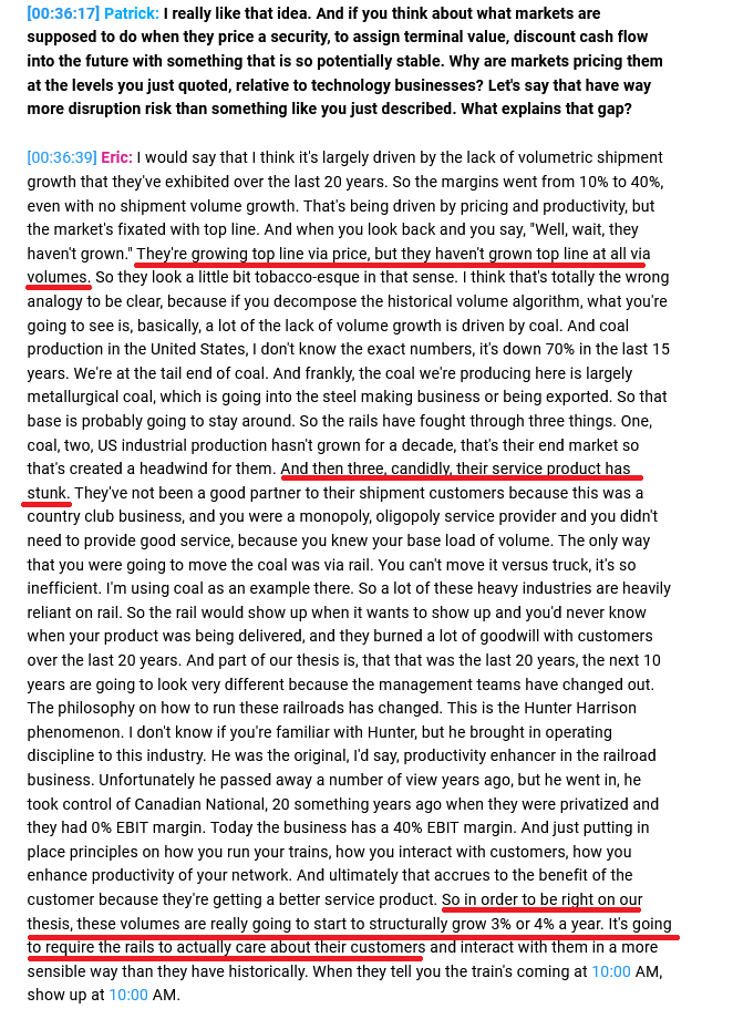 I am new to rails, so prob a dumb Q. But is there risk these cos have over optimized the last decade+? Longer trains, smaller crews, etc all make sense from an inefficient starting point, but can be taken too far. STB seems to think so. And then you're reliant more on volumes?