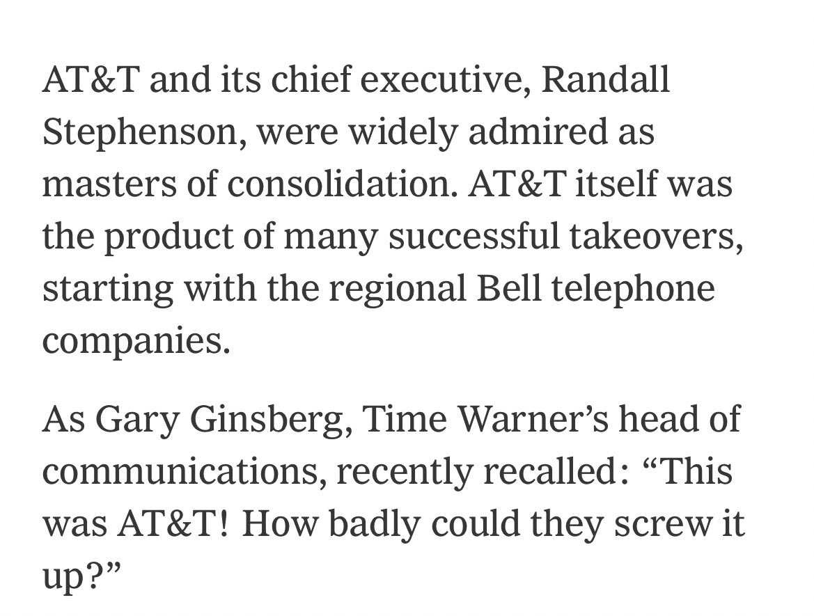 I go back to the Fox deal. I didn't like it at the time, and I don't think it has served them well (obviously they didn't "get" Sky because Comcast gonna Comcast)