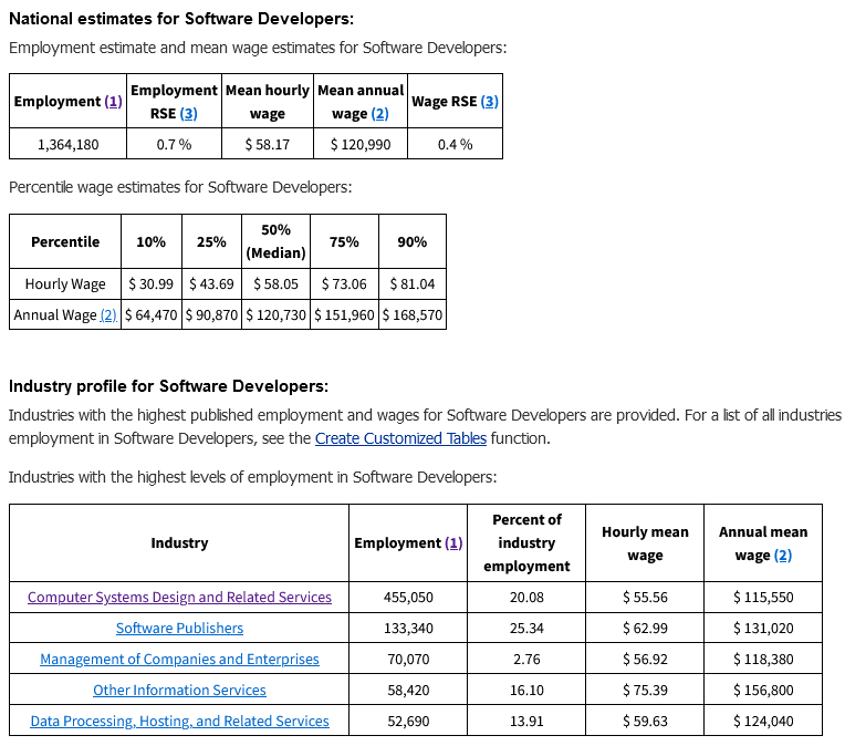 BLS estimates there are 1.3M software developers, but I'm struggling to find how to get this longitudinally.