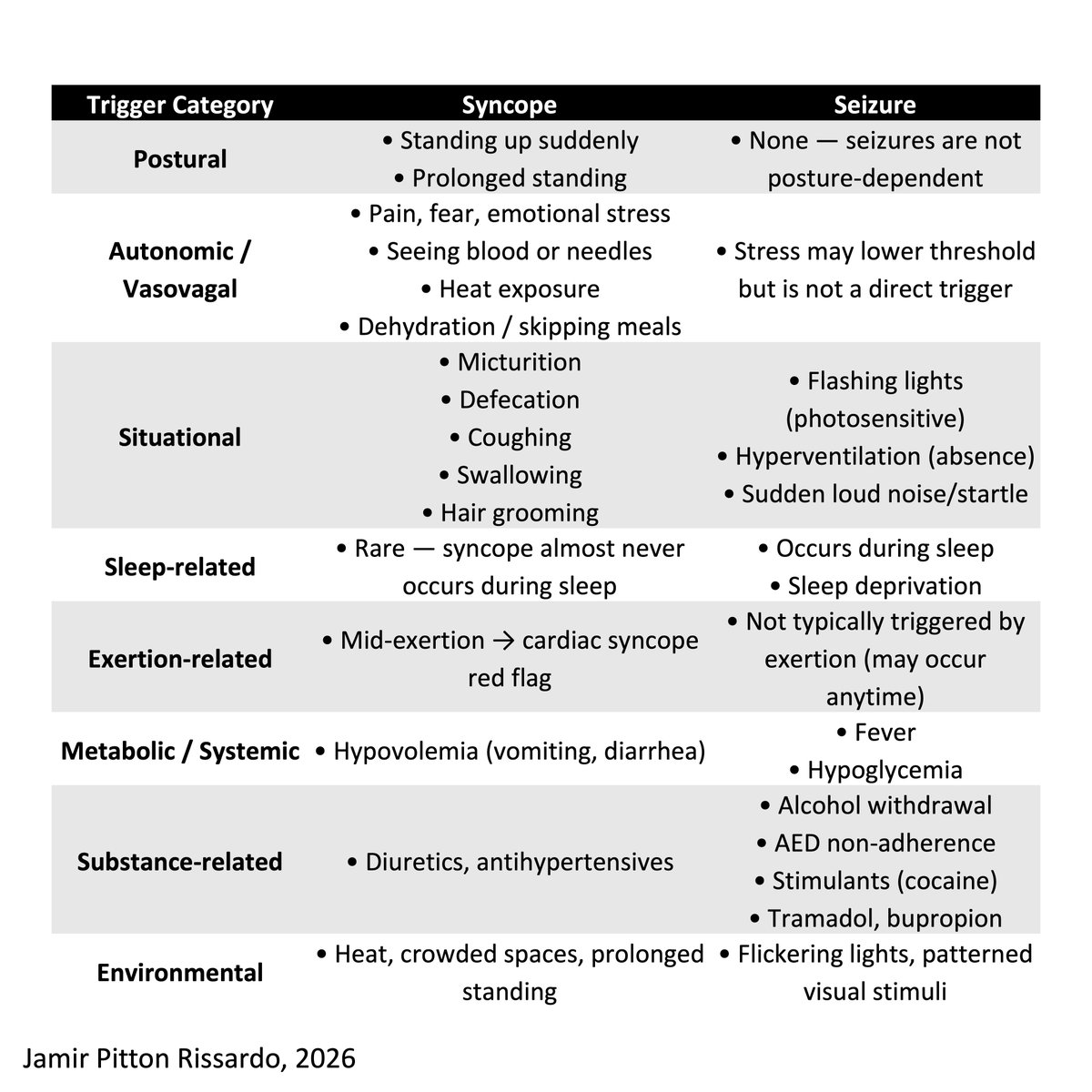 -Triggers (sleep dep, drugs, stand) vs premonitory symptoms