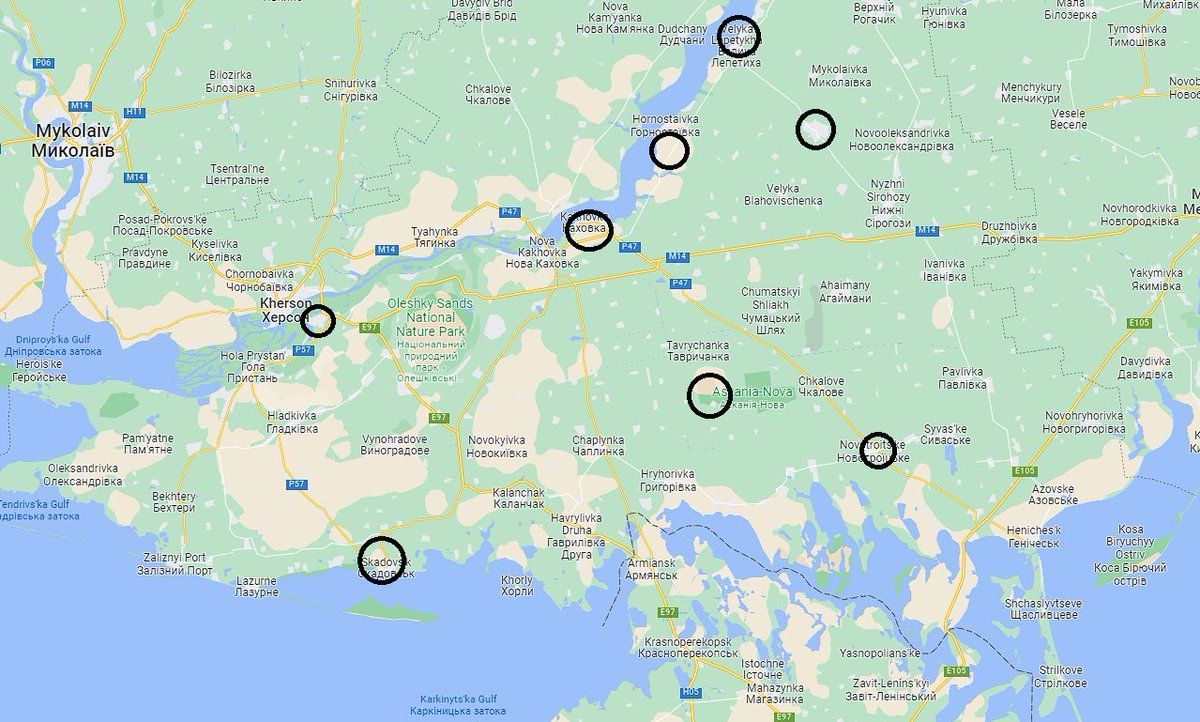 AFU seems to be attacking multiple places in occupied Kherson right now. Next to Skadovsk and Oleshky also reports come in of incoming projectiles in Novotroits'ke.