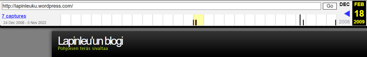 No, totta kai blogi on kadonnut. Mutta katsotaanpa, joskohan jotain siitä löytäisi.