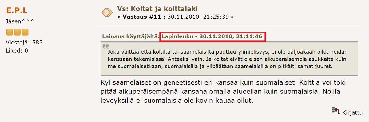 "Lapinleuku" oli aktiivinen Scriptan vieraskirjassa ja Hommaforumilla. Kiinnostavaa kyllä nimimerkki on poistettu Hommalta, ja siinä samalla alkuperäiset viestit ovat kadonneet. Sitaatteja on silti säilynyt muissa viesteissä. Ylimieliset koltat ja saamelaiset ärsyttivät tässäkin.