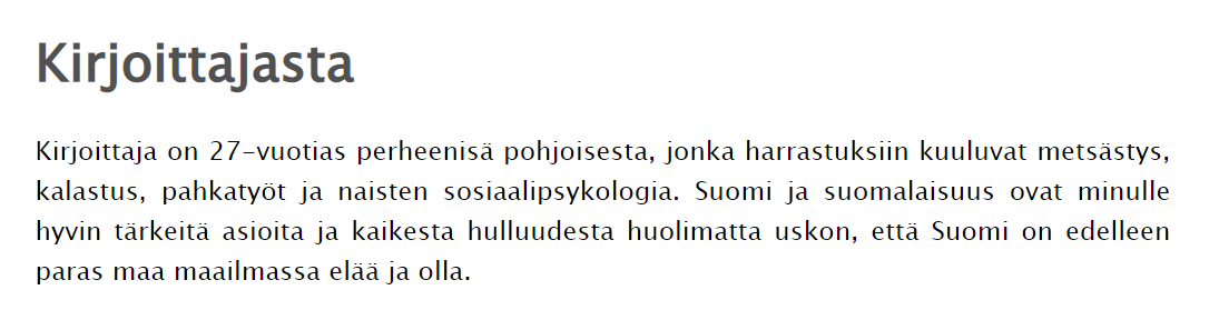 Ja totta kai hän esitteli itsensä blogissaan. Blogi oli avattu marraskuussa 2008, joten iän perusteella hän oli syntynyt joko 1981 tai aivan loppuvuodesta 1980. Lisäksi harrastemaininta "pahkatyöt ja naisten sosiaalipsykologia" tuntuisi soittavan jotain kelloja.