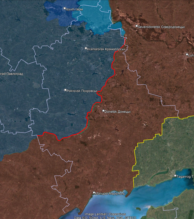 The Donetsk front is around 230 km long and currently the most active front. It is also the only sector where Russian conduct offensive operations but with devastating results for them. It is therefore the sector with highest Russian casualties. 4/10