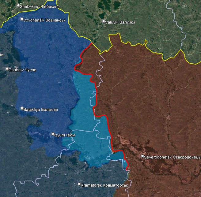 The most Northern fronts are in the Luhansk/Kharkiv sector. It is around 187 km long with some intense battles primarily at the Svatove-Kreminna line. Currently, it is more a stalemate but Russian forces are getting ground down. 5/10