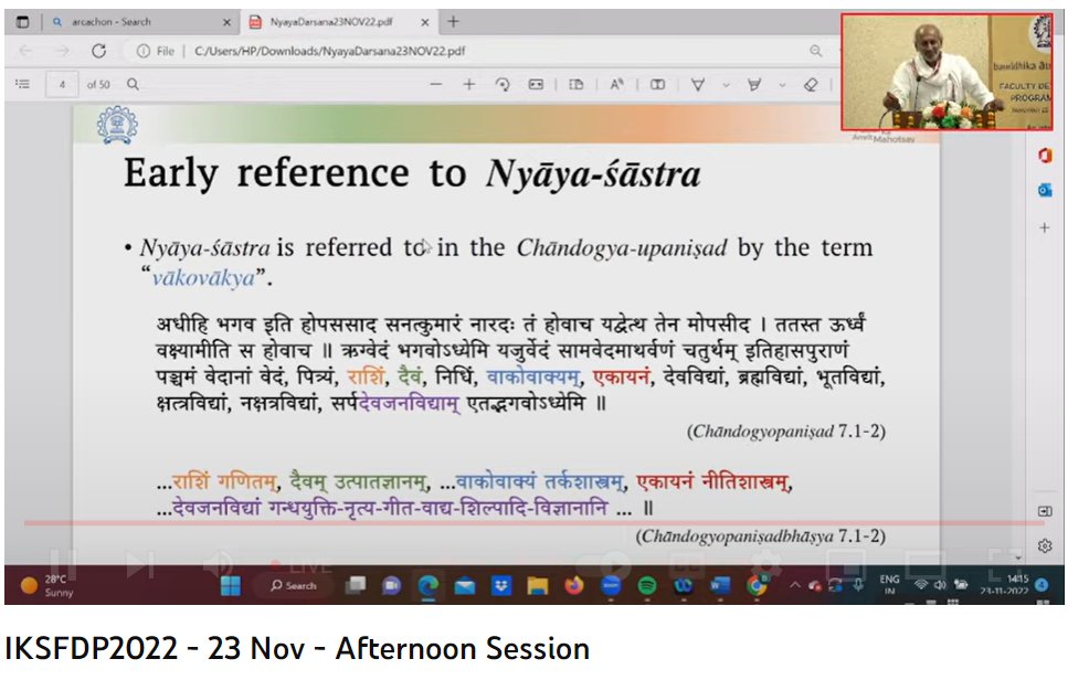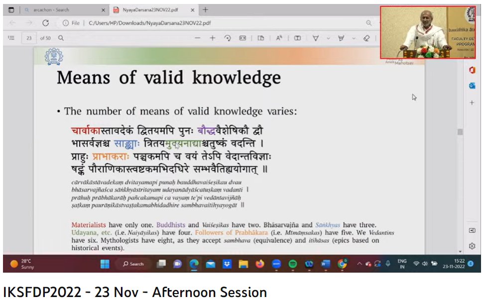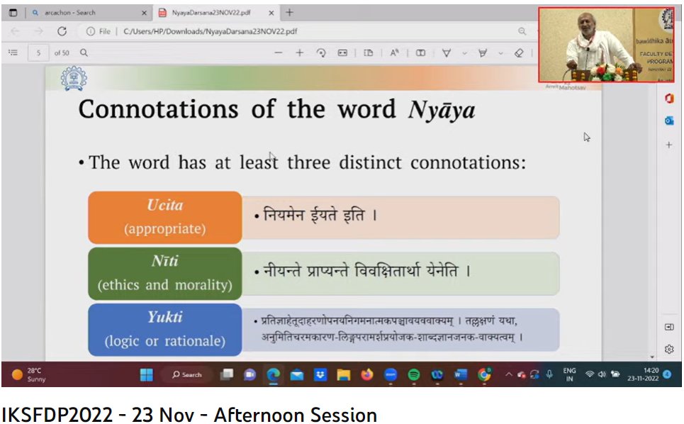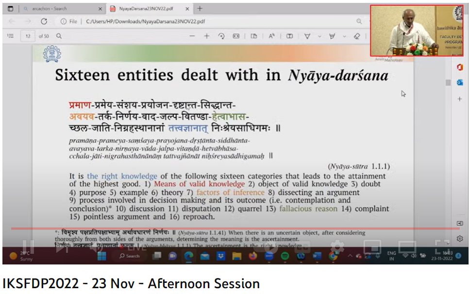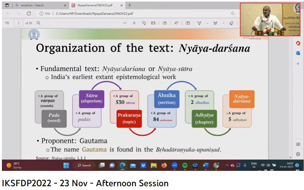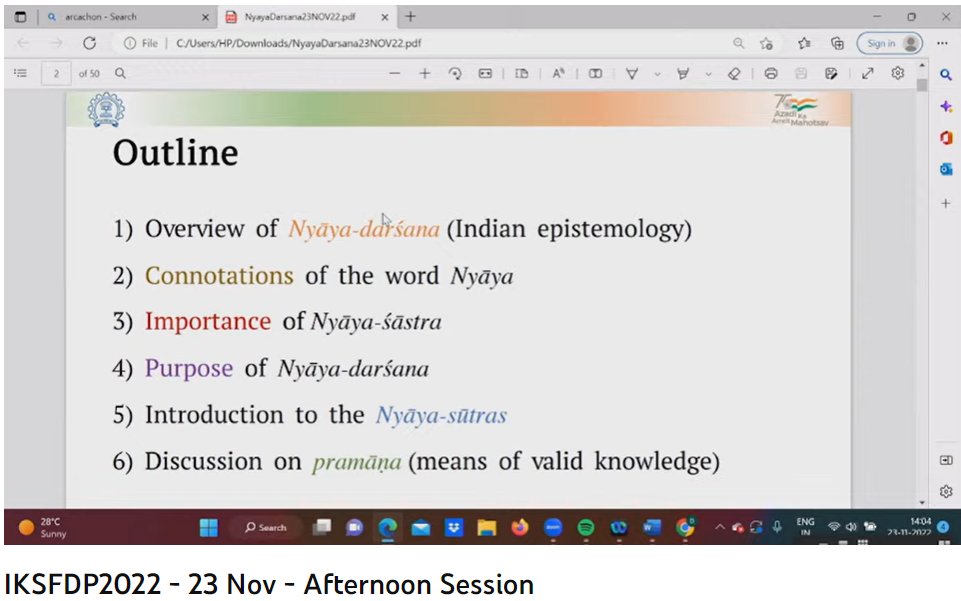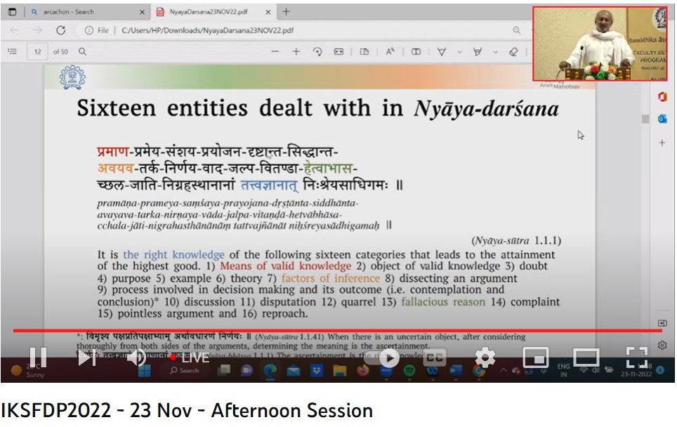 Currently on-going: Prof. Krishnamurthi Ramasubramanian on 'India’s Epistemology (Introduction to Gautama’s Nyayasutras: India’s earliest epistemological work)'