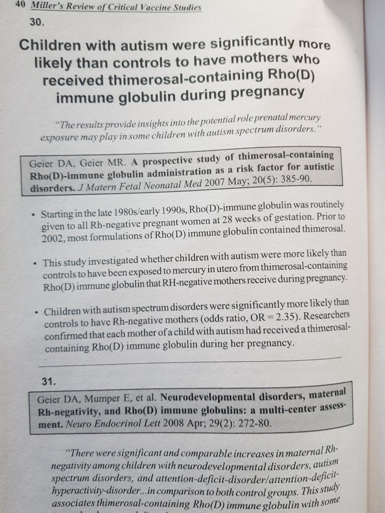 10 Bebês de mulheres que receberam a vacina imunoglobina Rho(D)  durante a gravidez, tiveram taxas mais elevadas de autismo (OR = 2,35) comparados aos que não foram expostos à essa vacina.  (30) + Image
