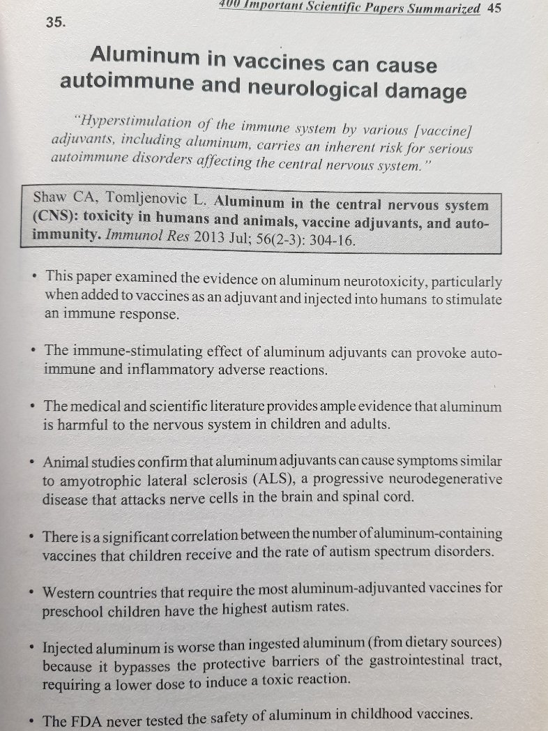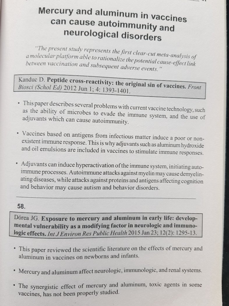 15 Este artigo revisou a literatura científica sobre os efeitos do mercúrio e do alumínio em vacinas em recém-nascidos e bebês. O mercúrio e o alumínio afetam os sistemas neurológico, imunológico e renal. (58)+ Image