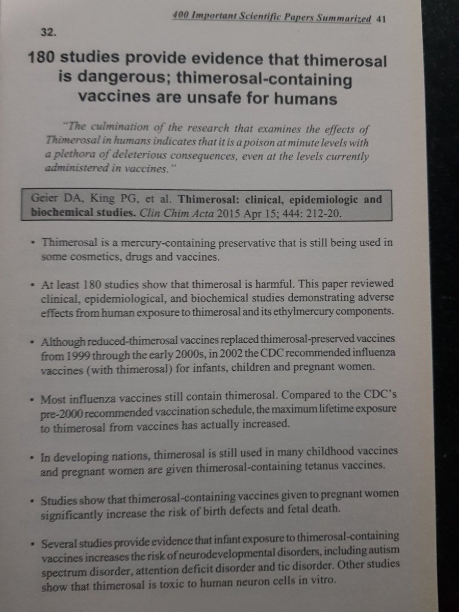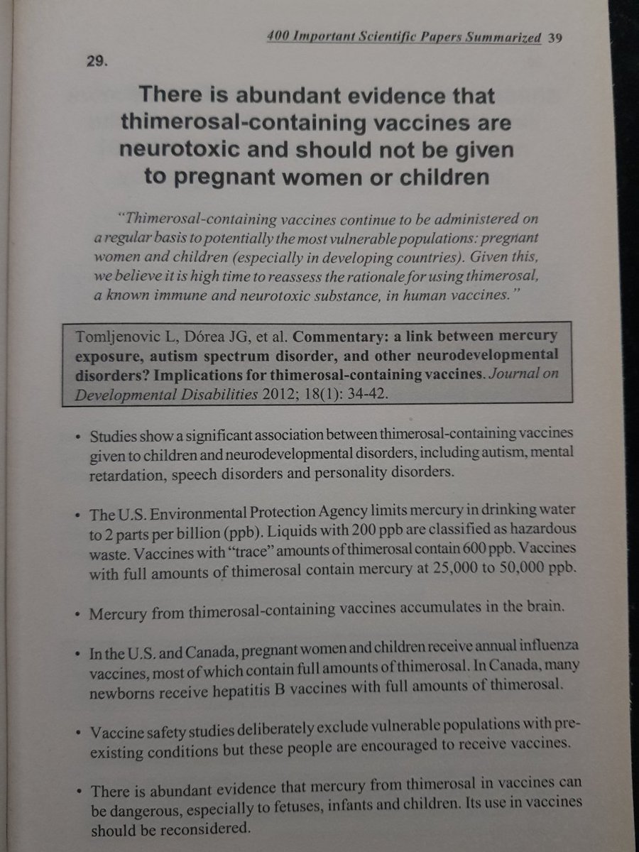 1 180 estudos mostram que o timerosal é perigoso, a exposição de bebês a vacinas contendo timerosal aumenta o risco de transtornos do neurodesenvolvimento, incluindo transtorno do espectro do autismo. (32) + Image