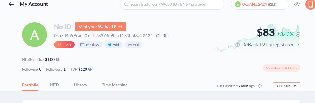 from the picture below you will notice the prompt to mint a debank id for 96$, if you are a rich kid which I know you are, you can buy it...
